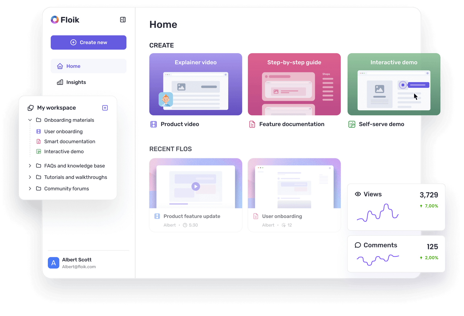 - Multi-format output from one recording. Record once, get an interactive demo, step-by-step guide, and explainer video. That's Floik's core differentiator and the reason most users pick it over single-format tools.
